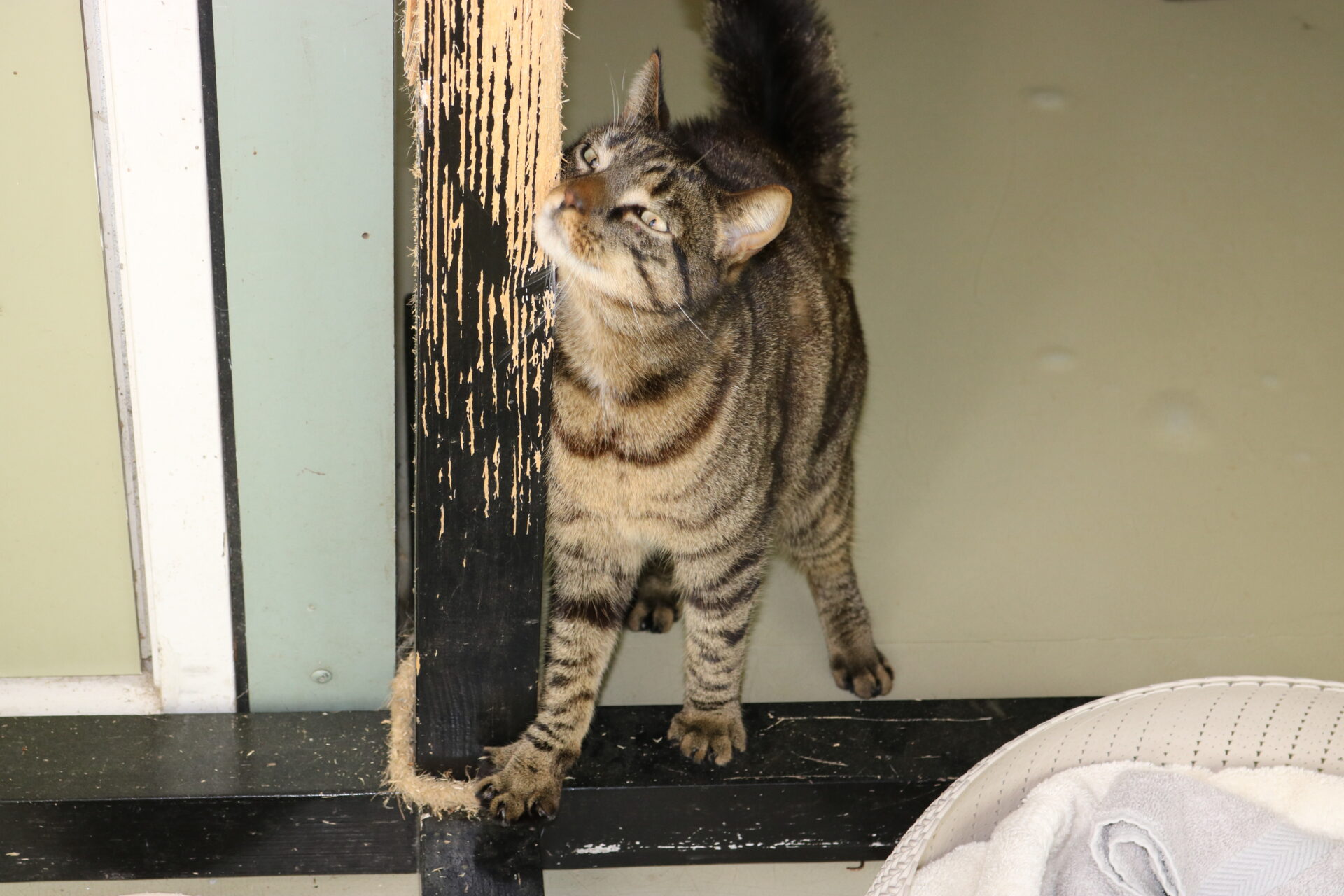 Jippie (nr. 22798) is bij ons terecht gekomen omdat zijn baasje, vanwege haar leeftijd, niet meer voor hem kon zorgen. Jippie is een kater die veel aandacht wil. Zodra je zijn verblijf binnenkomt laat hij luid mauwend weten dat je niet kunt vertrekken zonder hem aangehaald te hebben. Hij geeft je voortdurend kopjes. Hij probeert voortdurend bij je in de buurt te blijven. Voor bekenden is het een een lieve kater, volgens zijn oude baasje, maar hier bij ons blijkt dt hij iedereen even aardig vindt zolang hij maar aandacht krijgt. Hoe hij met kinderen omgaat is niet bekend, vanaf 16 jaar gaat het in ieder geval goed. Honden is hij ook niet gewend. Andere katten accepteert hij alleen buiten. Jippie is graag buiten, ook in de winter. Binnen zit hij graag voor het raam naar buiten te kijken. Jippie is gek op stromend water dus zit hij graag in of bij de gootsteen. Ook zijn eigen waterfonteintje vindt hij leuk. Hij heeft veel last gehad van vlooien waardoor zijn vacht er nu nog wat gehavend uitziet.